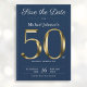 Save The Date Classy Gold Navy Blue 50th Birthday Party