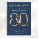 Save The Date Classy Gold Navy Blue 80th Birthday Party