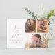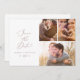 Cette délicate calligraphie or rose 3 photo collage enregistrer la carte date est parfait pour un mariage moderne. Le design minimaliste romantique présente une belle et élégante typographie rose vif et poussiéreuse rose sur un arrière - plan blanc au look épuré et sobre.