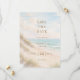 A watercolored sandy beach, sand dunes, ocean waves background. Personalize and add a date and your names. The text: Save the Date is written with a large trendy hand lettered style script.