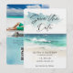 Annonce de Save the Date - Une magnifique scène de plage aquarelle avec une typographie script moderne. Avec une photo du couple heureux au dos Le code QR est également au dos de l'invitation.Save the Date fait partie d'une collection.
