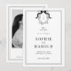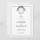 Présentez votre mariage avec style avec cette invitation de mariage avec code QR au monogramme à noeud papillon Coquette de la crête française. Avec une photo intemporelle en noir et blanc, un monogramme à ruban élégant et un code QR pour votre site web de mariage, ce design allie charme vintage et commodité moderne. La crête française sophistiquée et le noeud papillon coquette en font un choix parfait pour une célébration chic et élégante !