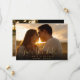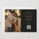 Cette élégante carte de rappel de mariage avec écriture en forme de cœur comporte votre photo et une date de sauvegarde de style au-dessus de vos noms, date et lieu. Le verso comporte une photo supplémentaire, un message et un code QR de site web de mariage sur fond noir. Conçu par Thisisnotme©