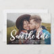 Annoncez la joyeuse nouvelle de vos fiançailles et de votre mariage imminent avec des invitations uniques et personnalisées "save the date" avec photo. Les 2 photos, le code QR scannable et tous les textes de ce modèle sont faciles à personnaliser, y compris la superposition de texte qui peut être changée en "Sauvez notre date". (ASTUCE DE PLACEMENT D'IMAGE : un moyen facile de centrer une photo exactement comme vous le souhaitez est de la rogner avant de la télécharger sur le site Web de Zazzle.) Le design noir et blanc présente deux photos du couple fiancé, une calligraphie script tendance à la main et une typographie minimaliste moderne. En scannant le code QR avec leur téléphone, les invités sont directement envoyés sur le site Web du mariage où ils peuvent voir tous les détails importants et se connecter avec vous en ligne. Cette carte de note d'annonce élégante est un moyen élégant d'informer les amis et la famille de