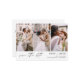 Code QR Paysage moderne et élégant Horizontal Trois (3) Photo Enregistrer la date Magnet Mariage avec typographie manuscrite. L'aimant d'invitation de date inclut la typographie de script et le design chic et simple auquel vous pouvez ajouter votre photo de fiançailles customisée à.
