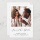 Cette simple et minimaliste carte Save the Date présente une photo carré au-dessus des mots "Save the Date" dans un élégant script d'écriture en noir, suivie des noms du couple, date du mariage et ville en sans serif police sur un arrière - plan blanc. Ajoutez un message plus détaillé avec des informations supplémentaires sur l'inverse, ainsi qu'un code QR qui envoie les invités à votre site Web mariage.