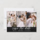 QR Code - Paysage moderne et élégant Horizontal Trois (3) Photo Enregistrer la date Magnet Mariage avec typographie manuscrite. L'aimant d'invitation de date inclut la typographie de script et le design chic et simple auquel vous pouvez ajouter votre photo de fiançailles customisée à.