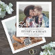 Annoncez la joyeuse nouvelle de vos fiançailles et de votre mariage imminent avec de belles invitations personnalisées "save the date" à photos. Les 2 photos, le code QR scannable et toutes les formulations de ce modèle sont faciles à personnaliser, y compris la superposition de texte qui peut être changée en "Sauvez notre date". (ASTUCE DE PLACEMENT D'IMAGE : un moyen facile de centrer une photo exactement comme vous le souhaitez est de la rogner avant de la télécharger sur le site Web de Zazzle.) Le design moderne noir et blanc présente deux photos du couple fiancé, une calligraphie script manuscrite tendance et une typographie classique élégante. En scannant le code QR avec leur téléphone, les invités sont directement envoyés sur le site Web du mariage où ils peuvent voir tous les détails importants et se connecter avec vous en ligne. Cette carte de note d'annonce unique est un moyen élégant d'informer les amis et la famille de la