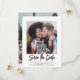 Annoncez la joyeuse nouvelle de vos fiançailles et de votre mariage imminent avec des invitations uniques et personnalisées "save the date" avec photo. Les 2 photos, le code QR scannable et tous les textes de ce modèle sont faciles à personnaliser, y compris le script qui peut être changé en "Sauvez notre date". (ASTUCE DE PLACEMENT D'IMAGE : un moyen facile de centrer une photo exactement comme vous le souhaitez est de la rogner avant de la télécharger sur le site Web de Zazzle.) Le design noir et blanc présente deux photos du couple fiancé, une calligraphie script manuscrite tendance et une typographie minimaliste moderne. En scannant le code QR avec leur téléphone, les invités sont directement envoyés sur le site Web du mariage où ils peuvent voir tous les détails importants et se connecter avec vous en ligne. Cette carte de notification élégante est un moyen raffiné d'informer les amis et la famille de la célébration de