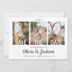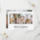 Annoncez la joyeuse nouvelle de vos fiançailles et de votre mariage imminent avec des invitations personnalisées uniques pour annoncer la date à retenir avec des photos. Les 4 images, le code QR scannable et tous les textes de ce modèle sont faciles à personnaliser, y compris la superposition de texte blanc qui peut être changée en "Sauvez notre date". (ASTUCE DE PLACEMENT D'IMAGE : un moyen facile de centrer une photo exactement comme vous le souhaitez est de la rogner avant de la télécharger sur le site Web de Zazzle.) Le design noir et blanc présente quatre photos du couple fiancé, une calligraphie élégante à l'écriture manuscrite et une typographie minimaliste moderne tendance. Lorsque les invités scannent le code QR avec leur téléphone, ils sont envoyés directement sur le site Web du mariage où ils peuvent voir tous les détails importants et se connecter avec vous en ligne. Cette carte de vœux unique est un moyen élégant d'informer les amis