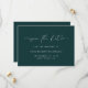 Ces cartes de rappel de mariage simple et élégant de couleur sarcelle verdâtre foncé présentent une écriture manuscrite blanche tendance, avec des cœurs fantaisistes faisant partie de la typographie. Ajoutez vos informations de mariage pour compléter ce style élégant et minimaliste.