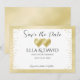 Cœurs de mariage élégants en or Save The Date, conçus avec des cœurs de couleur or et des accents de confettis sur fond blanc. Le texte du recto comprend : les prénoms des mariés et la date du mariage. Le verso est un fond de couleur or. Pour personnaliser, insérez simplement vos informations dans notre modèle facile, en remplaçant le texte d'exemple. N'oubliez pas de consulter l'ensemble de la collection Cœurs de mariage élégants en or pour les cartes et accessoires assortis.