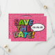 Une bande dessinée amusante, cool et tendance inspirée de sauver la carte de dattes avec les coeurs d'amour confetti. Mets du fouet, zap, pow dans ton faire-part de date mariage. Conçu par Thisisnotme©