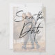 Prenez vos 5 meilleures images de votre séance photo fiançailles avec 4 pour l'avant et une pour l'arrière. Il dispose d'un design de lettrage manuel qui dit Enregistrer la date.