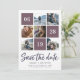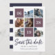 Annoncez vos nouveautés avec ces chic enregistrer les cartes de dattes dans une palette de couleurs spectaculaires de vin de prune luxuriante et de bleu nuit profond. Les cartes comportent six de vos photos de carré préférées et votre date de mariage dans une mise en page quadrillée, avec "Enregistrer la date" sous une nouvelle police de caractères manuscrite décontractée. Personnalisez avec vos noms, l'emplacement mariage et le site Web ou d'autres informations en bleu nuit riche. Cartes inversées à bandes horizontales larges.