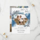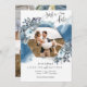 Magnifique quatre photo, aquarelle bleue et bleu floral et feuillage Mariage Enregistrer la carte Date. À l'avant, une belle célébrité géométrique entourée de fleurs et de feuillage avec l'image à l'intérieur et cascade de tache d'aquarelle bleue sur le dos. Utilisation de détails de calligraphie écrits à la main modernes. Sur le dos trois collages photo avec cadre élégant petit avec vos initiales joignant les trois photos ensemble. Une partie de notre collection "Rustic Blue Mountains" avec une variété de produits de coordination disponibles.