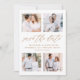 Annoncez vos prochains mariages avec style avec notre carte de rappel à sauvegarder photo Elegant Script. Les cartes de rappel élégantes affichent 4 de vos photos de fiançailles préférées encadrées en blanc avec "save the date" dans un script de calligraphie moderne or. Personnalisez la carte en ajoutant vos noms, date de mariage et lieu de mariage. La carte de rappel minimaliste inverse pour révéler un fond or solide ou une couleur de votre choix.