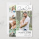 Modèle de carte photo minimaliste pour annoncer la date de votre mariage avec quatre photos plus petites et une photo plus grande du couple heureux avec des polices noires sur fond blanc. Carte de notification de date de mariage avec photo simple face dans un design épuré et moderne avec cinq photos dans une mise en page simple pour mettre en valeur vos photos préférées ou celles de votre séance photo de fiançailles. Demandez à vos futurs invités de réserver la date de votre mariage avec cette carte de notification de date de mariage simple et moderne avec de la place pour cinq photos.