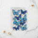 Vertical composition of réalistes, blue and white morpho butterflies on gray textured background. Morphine bleu.