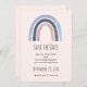 Enregistrez la carte de date avec un arc-en-ciel mignon et capricieux. Couleurs bleu et pêche.