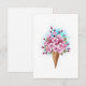 Cône gaufre douce avec fleurs de cerisier japonais rose frais sur arrière - plan blanc avec stries d'aquarelle bleue. Cerise japonaise rose.