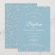 Une carte d'annonce de sauvegarde de baptême ou de christening élégante et stylée avec des coeurs de confettis argentés délicats. Personnalisez avec vos informations spéciales de baptême ou de christening en lettrage chic. Conçu par Thisisnotme©