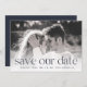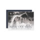 Annoncez votre date de mariage dans un style inoubliable avec ces photos élégantes et modernes enregistrer les cartes de date, avec un fond plein de saignement photo horizontale ou orientée paysage avec "enregistrer la date" superposé en lettres bleu marine le long du fond. Vos noms, date mariage et emplacement du mariage apparaissent en dessous dans les lettres modernes. Personnalisez le dos avec des détails supplémentaires, comme votre site Web mariage.