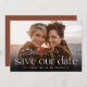 Annoncez votre date de mariage dans un style inoubliable avec ces photos élégantes et modernes enregistrer les cartes de date, avec un fond de saignement complet photo horizontale ou orientée paysage avec "enregistrer la date" superposé en lettres blanches le long du fond. Vos noms, date mariage et emplacement du mariage apparaissent en dessous dans les lettres modernes. Personnalisez le dos avec des détails supplémentaires, comme votre site Web mariage.