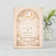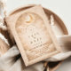 Un design céleste lumineux présentant des croissants de lune délicats et des étoiles de constellation éparpillées sur un fond de parchemin chaud. Une bordure dorée raffinée encadre la composition, tandis qu'une typographie élégante crée un point focal gracieux digne d'un jalon aussi significatif. Les tons ivoire et champagne doux donnent à l'ensemble de la pièce une lueur radieuse et intemporelle. Parfait pour une célébration de quinceañera qui se veut romantique, élégante et touchée par la lumière des étoiles.