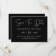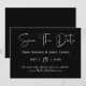 Partagez votre jour spécial avec cette carte moderne de sauvegarde de la date présentant des coordonnées aquarelles noires dans une mise en page horizontale élégante. Parfait pour les mariages minimalistes, formels ou de destination. Personnalisez avec vos noms, date et lieu.
