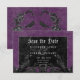 Transportez vos invités dans un monde de sombres et d'élégance enchanteresse avec notre mariage gothique vintage enregistrez la carte de date. L'arrière - plan violet, profond et âgé, ouvre la voie à un contraste saisissant, car un texte blanc gras émerge des zones de texte noir complexes. Des éléments gothiques tridimensionnels ornent le design, capturant l'essence du mystère et de l'amour. Lance la magie et donne le ton pour une journée de mariage inoubliable. Créé par Simply Farmhouse Press.