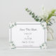 Cet ecru en coton eucalyptus sauvez la date est parfait pour votre mariage moderne. Ce design présente une végétation d'eucalyptus avec des peluches de coton blanc sur un script de calligraphie blanc et marine arrière - plan et noir avec une bordure noire dans un schéma classique moderne. N'hésitez pas à nous contacter pour toute question concernant ce design.