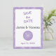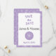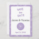 Save The Date Couleur violet clair et pivoines blanches.