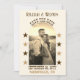 Un mariage de style concert de musique country sauvez la date dans les tons sépia avec votre photo sur le devant en forme d'arc entouré d'étoiles. Texte élégant pour vos noms et les lettres classiques du pays occidental pour "enregistrer la date" et votre date mariage. Ce moderne sauve la date avec une sensation vintage va éveiller vos invités. Le revers de la carte comporte une autre photo, plus d'étoiles et de la place pour un message supplémentaire. Il y a aussi un code QR et une version texte de votre site mariage. Tout le texte est customisé par vous. Les couleurs peuvent être customisées dans l'outil de conception.