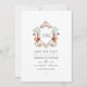 Faire-part de mariage aquarelle avec une crête fantaisiste sur le thème de la forêt et des bois personnalisable avec les initiales de la personne célébrée.
