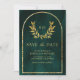 Save The Date Couronne de laurier doré feuilles émeraude vert ma
