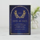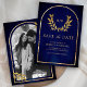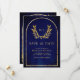 Save The Date Couronne de laurier doré Feuilles Mariage Bleu Roy