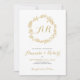 Couronne dorée fleurie sur un arrière - plan blanc, invitation de mariage personnalisable.