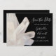Les cristaux blancs sur Black Wedding Save the Date Faire-part Card donnent le ton de la cérémonie de mariage et de la réception. Cet élégant nuptial zen personnalisé garde le faire-part date dispose d'une photographie d'une grappe de quartz blanc minéral grisé modèle de géoode druzy avec un arrière - plan noir. Le quartz clair est également connu comme le "guérisseur maître" et la "pierre de puissance" et est dit pour augmenter toute énergie ou intention et fait une amélioration ou un ajout unique à votre décor ou thème mariage.