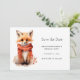Save The Date Cute Smiling Fox Pup in a Red Scarf