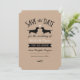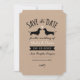 Silhouettes Dachshund avec coeur sur arrière - plan kraft style. Un plaisir enregistrer la date de l'annonce pour les amoureux de les chiens plus écologiques. Personnalisez ce faire-part de mariage original avec le nom du couple heureux et la date du mariage. Visitez le Doodle World de Jenn pour encore plus de produits de planification mariages avec ce design de chiens weenie et plus d'invitations de mariage de chiens.