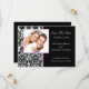 Annoncez votre futur mariage avec nos cartes d'annonce Save The Date avec un magnifique motif damassé noir & blanc avec un cadre photo lavande taillé. Ajoutez simplement vos informations de mariage et votre photo et vous êtes tous prêts à partir ! Correspondance des timbres-poste et des scellés d'enveloppe disponibles dans notre boutique