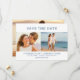 Design moderne et frais présente trois de vos photos. Deux photos plus petites créent un groupe à travers le centre de votre enregistrement de l'invitation de date. Une photo pleine dimension couvre l'intégralité du dos de la carte de date de sauvegarde. Le texte slab serif donne à la carte son ambiance moderne et hanche. Tout le texte peut être modifié. Modèle très facile à utiliser.