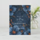 An enchanting deep-navy wedding design wrapped in glowing copper florals and delicate botanical detailing. This immersive, moody palette creates a romantic twilight atmosphere, perfect for elegant evening weddings or couples who love rich, dramatic aesthetics. The ornate frame draws the eye to your names and details, giving the entire piece a luxurious, storybook feel. A sophisticated choice for modern romantics who want their celebration to feel timeless and striking.