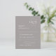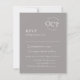 Cette carte en réponse douce et grise moderne met les infos de réponse du client et le choix de repas de réception en grande ligne, propre, typographie blanche et un détail unique avec la date avant la R.S.V.P. dans un style sceau chic. Une partie de la suite d'invitation Modern Date Seal.