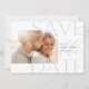 Annoncez votre date mariage avec ces belles cartes de datation modernes avec une photo horizontale ou orientée paysage avec "save the date" recouvert de lettres pastel neutres claires et aérées. Personnalisez avec vos noms, votre date de mariage et votre emplacement.