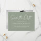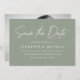 Enregistrez simplement la carte de date avec "Save the Date" dans un script blanc manuscrit avec un arrière - plan vert sage. Personnalisez le moderne enregistrer la carte de date en ajoutant vos noms, date mariage, emplacement du mariage, site Web mariage, etc. Le minimaliste enregistrer la carte de date inverse pour afficher votre photo de fiançailles horizontal préférée.