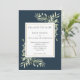 Doté de délicats feuilles d'aquarelle sur un arrière - plan bleu marine. Cette carte Chic Changer la date peut être personnalisée avec vos détails mariages mis à jour. Conçu par Thisisnotme©