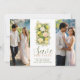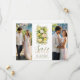 This Save the Date is ideal for weddings seeking a refined and personalized look, perfect for outdoor celebrations or events with a Mediterranean, natural, or sophisticated style. The design offers a clear and attractive visual presentation to announce the wedding date memorably, integrating the two front photographs as central elements, while the botanical and floral elements maintain coherence and refinement throughout the design.