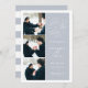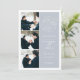 Simple et élégant, notre photo de demande romantique enregistrer la carte de date comprend trois de vos photos fiançailles préférées alignées sur le côté gauche, avec vos détails mariages sur la droite en blanc sur le gris brouillard. "Save the date" apparaît dans la typographie de script blanc avec un coeur chic travaillé dans le design. Ajoutez les détails de votre mariage, y compris les noms, la date du mariage et l'emplacement. Cartes inversées aux rayures horizontales modernes en gris et blanc, avec un champ de texte supplémentaire pour votre site mariage ou des informations supplémentaires.